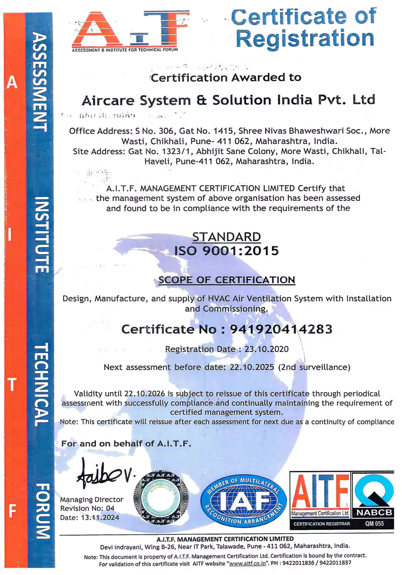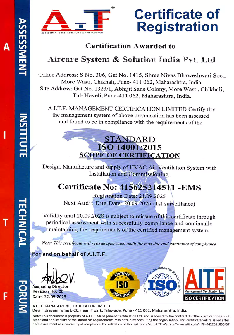 Aircare Group is a leading manufacturer and solution provider of sustainable, energy-efficient HVAC turnkey solutions. With over three decades of expertise, we cater to the commercial and industrial sectors, offering cutting-edge technology and innovative engineering solutions. Our commitment to quality, sustainability, and customer satisfaction has positioned us as a trusted name in the HVAC industry.